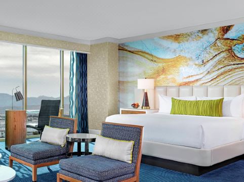 They feature a king-size bed in the private bedroom a sleeper sofa in the living room and a fully equipped kitchenette with granite counter tops mini fridge microwave and coffee maker. South of the Strip the Mandalay Bay Resort and Casino boasts a pool complex with a lazy river wave pool and an aquatic playground with 11-acres of sand and rentable cabanas bungalows and more. Moorea Beach Club - Mandalay Bay.